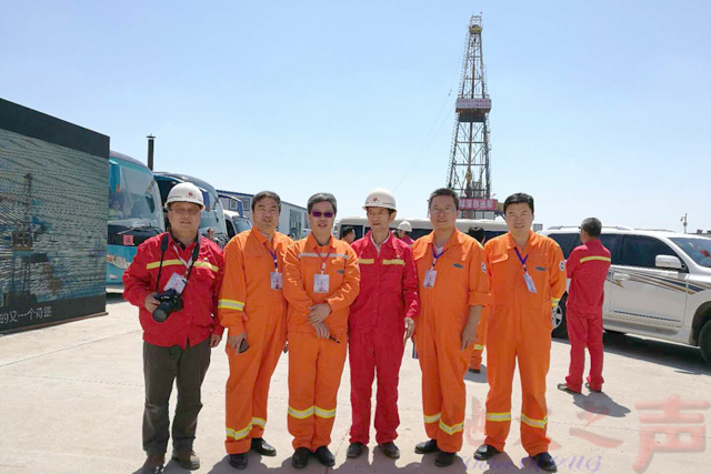 副校长王华(左三)带队参加完井仪式并慰问师生
