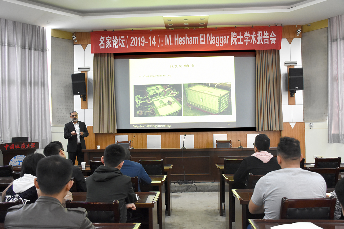 (通讯员吴文兵 胡燕)4月15日,国际著名岩土工程专家、加拿大工程院院士M. Hesham El Naggar教授来校作学术报告,100余位师生聆听了报告。