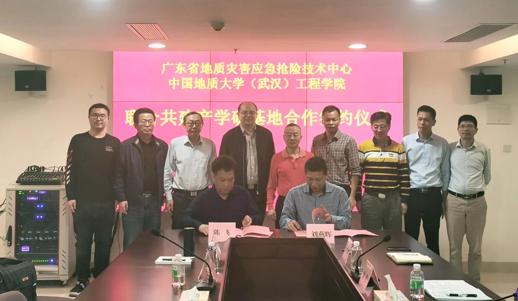 陈飞、刘燕辉签署产学研基地合作协议。根据协议,广东省地质灾害应急抢险技术中心作为中国地质大学(武汉)开云online(中国)的产学研基地,双方将定期就人才的培训、技术的创新、引进与推广、联合攻关、学生实习等方面开展协商研究。