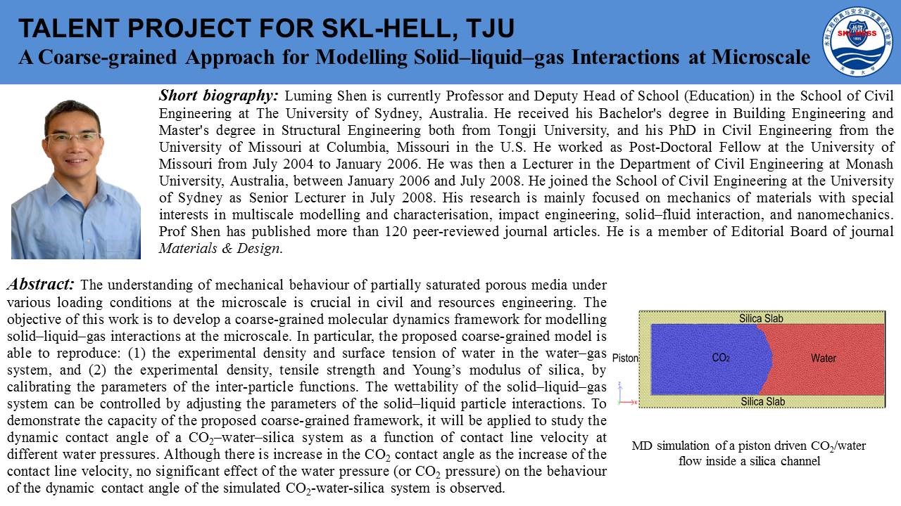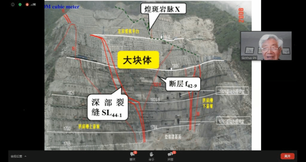 开云online(中国)院长焦玉勇教授作为国际岩石力学与岩石工程学会非连续变形分析专委会主席牵头组织并主持了此次云论坛会议,石根华教授基于数十年的关键块体理论研究工作,介绍了关键块体理论的发展、基本原理及采用赤平投影方法将2D关键块体理论拓展的3D关键块体理论,并且用多个实际工程演示了关键块体理论的坝基、硐室分析应用;赵坚教授以岩石动力学实验及实验设备为出发点,简述了霍普金森杆(SHPB)在高加载率动力学实验中的应用和真三轴SHPB的发展过程及其特性与应用领域;沈鲁明教授以气-液-固一体化微观数值计算方法为核心,介绍了CGMD(coarse-grained molecular dynamic)数值方法,详细阐述了CGMD中多相相互作用关系,并以数值实验对CGMD进行验证,最后介绍了CGMD方法模拟CO2-水-SiO2系统各相介质之间的相互作用。
