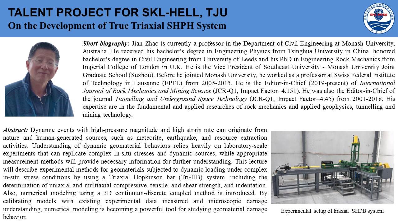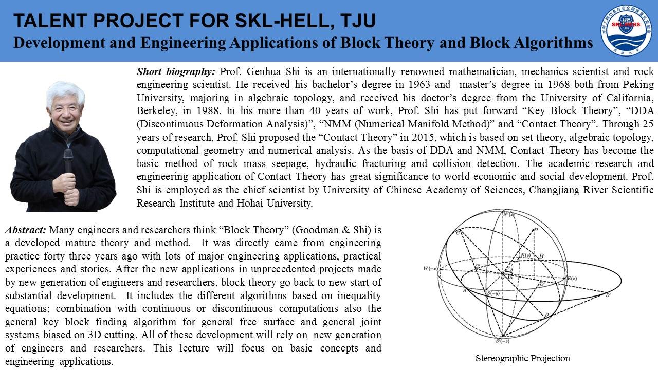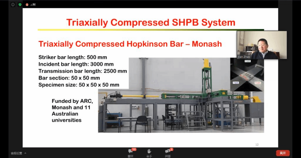 2020年7月18日上午,由国际岩石力学与岩石工程学会非连续变形分析专委会和岩石动力学专委会联合发起,中国地质大学(武汉)、天津大学和东南大学联合承办的第一期国际岩石力学云论坛成功举行。本次论坛邀请了关键块体和数值流形理论创建者石根华教授、澳大利亚莫纳什大学赵坚教授、澳大利亚悉尼大学沈鲁明教授分别作了题为《Development and engineering applications of block theory and block algorithms》、《On the development of true triaxial SHBP system》、《A coarse-grained approach for modelling solid-liquid-gas interactions at microscale》的精彩讲座,来自莫纳什大学、悉尼大学、新加坡南洋理工大学、日本京都大学、中国地质大学(武汉)、天津大学、东南大学、中山大学、大连理工大学、山东大学等全球各高校的1000余名专家学者参与了此次云论坛。