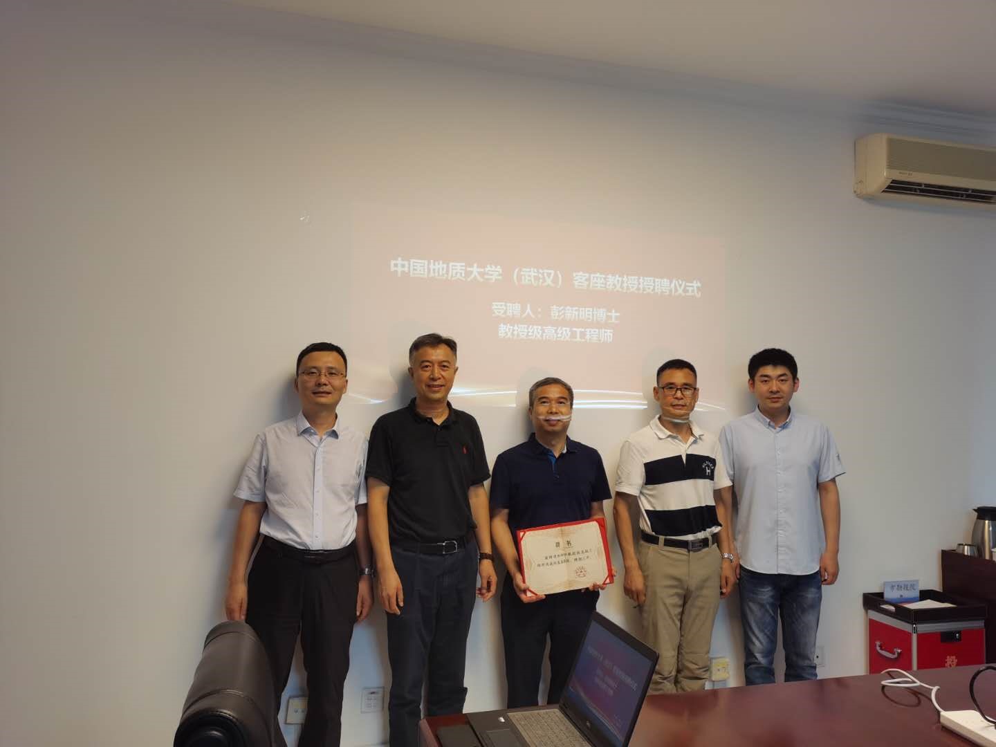 8月12日下午,中国地质大学(武汉)聘请彭新明博士为客座教授的仪式在北京市地质勘察技术院217会议室举行。北京市地质勘察技术院行政负责人王立发、院副总工程师兼资源勘查中心主任彭新明及相关人员出席仪式。仪式由开云online(中国)副院长窦斌教授主持。