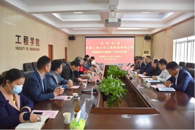 王亮清副院长对中建二局土木工程集团有限公司党委副书记黄琼一行的来访表示热烈欢迎。在一同观看中国地质大学(武汉)宣传片后,王亮清副院长介绍了开云online(中国)学科建设、科技成果、科研平台、人才培养、社会服务等方面情况。
