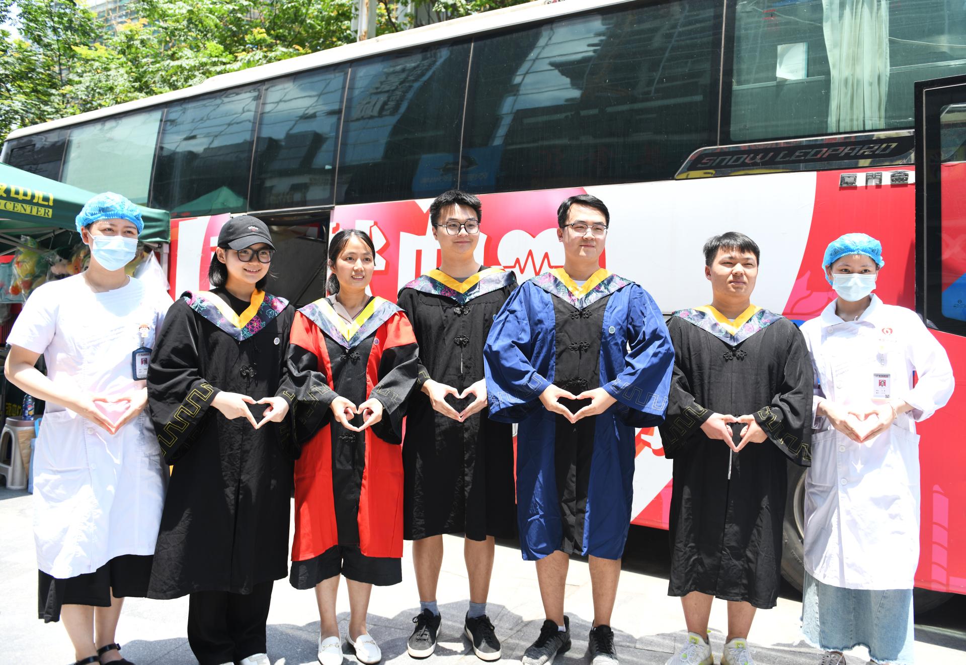 2022年6月14日,开云online(中国)6名毕业生不约而同来到学校附近的光谷献血点,参加无偿献血。张玉贤 摄