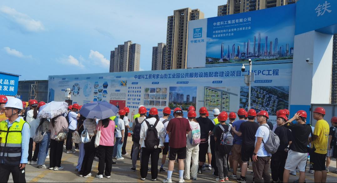 中建科工湖北公司人力资源部招聘专员张毅、向家兴全程陪同师生实习。
