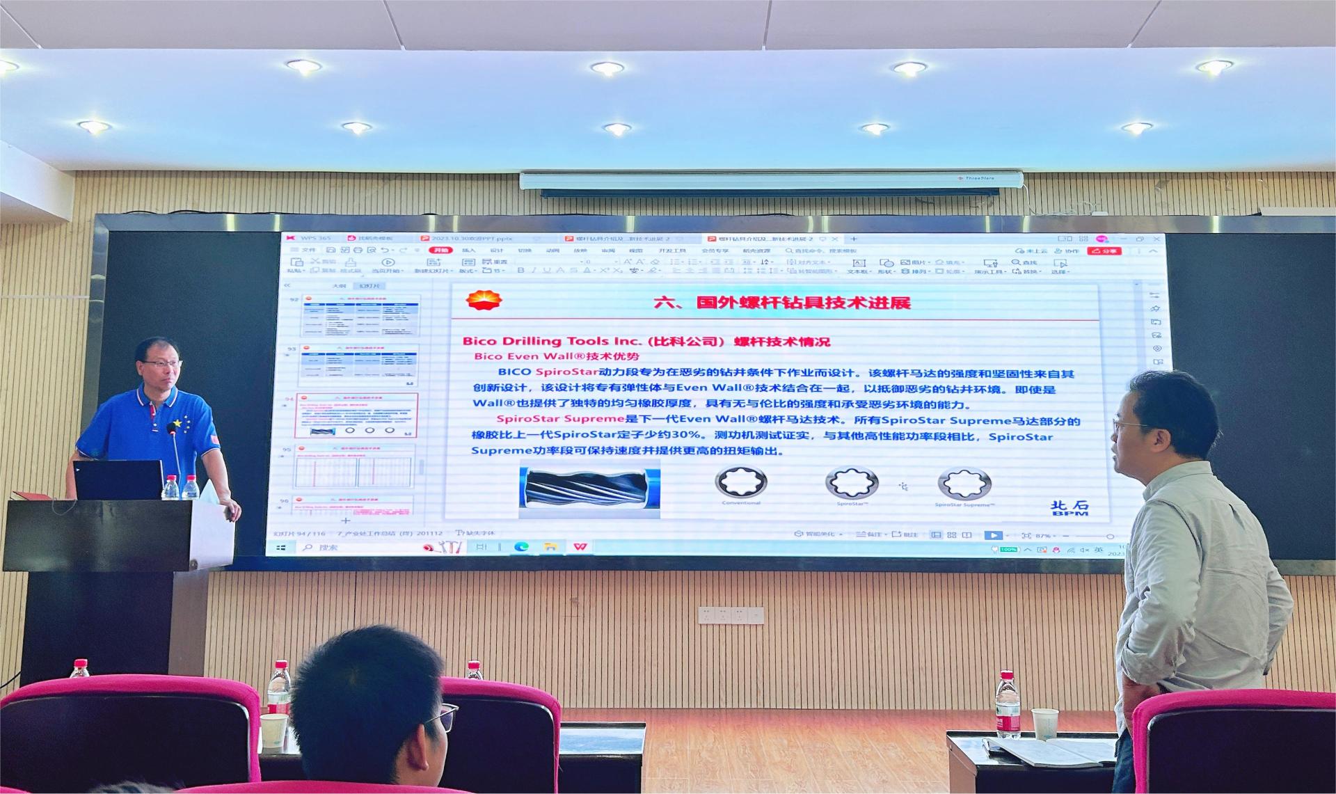 在交流互动环节,参会师生对报告中谈到的“等壁厚螺杆钻具的结构特点”进行了深入交流,于兴胜高级工程师对师生提出的问题进行了详细解答,段隆臣教授对此次报告会进行了总结发言。