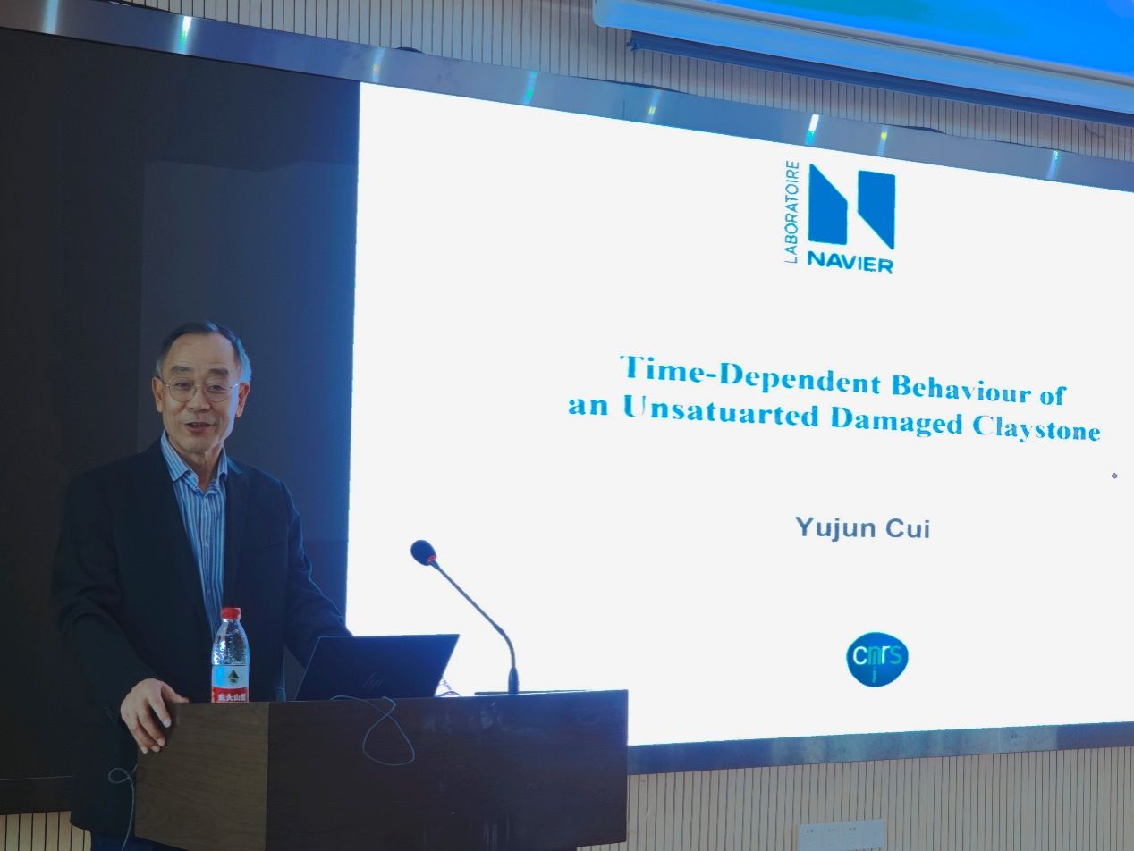 (通讯员 张峰 黄静)2023年10月31日上午,应开云online(中国)唐辉明教授和张峰特任教授的邀请,法国国立路桥大学Navier实验室岩土中心(CERMES)主任崔玉军教授来校访问,并作了题为“Time-dependent behaviour of unsaturated damaged claystone”的学术报告。唐辉明教授主持了报告会,李长冬教授、周佳庆特任教授、张峰特任教授、崔德山副教授、任兴伟副教授等100余名师生在现场参加了此次报告会。