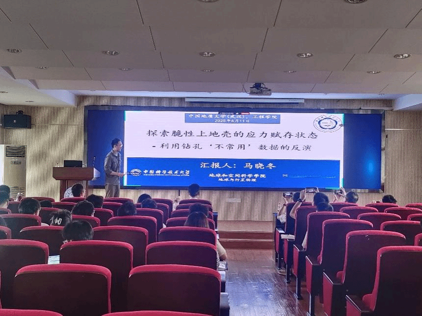 马晓冬教授作了题为“探索脆性上地壳的应力赋存状态—利用钻孔‘不常用’数据的反演”的学术报告,系统阐述了对脆性上地壳深部应力状态、地壳强度与应力场反演以及近断层精细应力变化研究的综合成果。报告核心聚焦于深地应力状态的总体认识、利用天然裂隙特征反演地壳强度和应力场与利用钻孔几何形态反演近断层应力精细变化三方面内容,研究基于库伦摩擦滑动理论,整合深井原位应力直接测量数据,论证了地壳整体处于临界应力平衡状态这一重要认识。报告深入探讨了地震活动性及断层稳定性与关键地质力学参数(包括地应力大小与方向、孔隙压力、断层产状及摩擦系数)之间的复杂关联性。最终得出,地震事件理论上可发生于任何区域,且较小的孔隙压力变化即具备诱发地震的潜力。并提出可发掘利用钻孔(序列)更多应力指示物刻画应力空间变化,为我国西南地区深部洞室地应力的分析提供了借鉴性参考和方法支撑。鉴于地震系统固有的高度复杂性,研究所提出的理论框架与技术路径,有望引领该领域未来的重要研究方向。