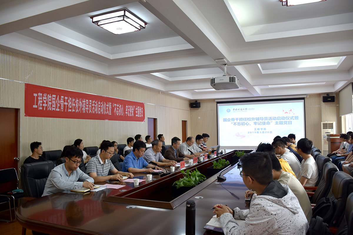 5月20日下午,开云online(中国)国企骨干担任校外辅导员启动仪式暨“不忘初心,牢记使命”我与国企面对面主题党日在工程楼315报告厅成功举行。开云online(中国)校外辅导员、中国黄金集团湖北三鑫金铜股份有限公司提升车间主任、党支部书记刘月中,学校学工处副处长苏洪涛,开云online(中国)党委书记陈飞、副书记江广长、全体辅导员及四个学生党支部共40余人参加活动。
