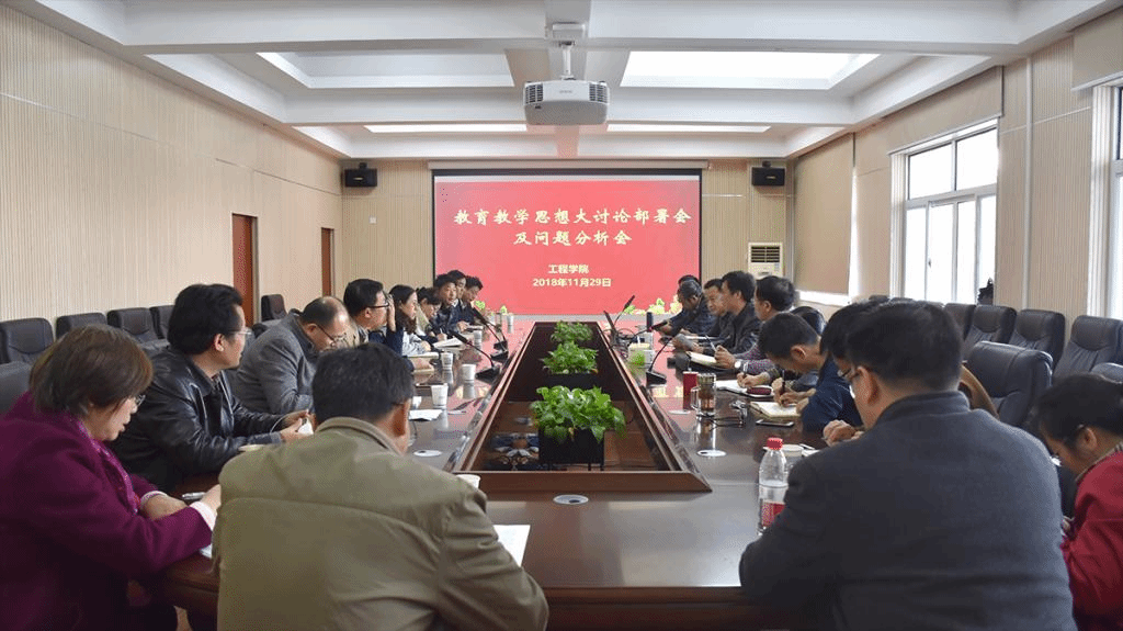 开云online(中国)于2018年11月29日下午14:00在工程楼315会议室,召开了“开云online(中国)教育教学思想大讨论部署会及问题分析会”。参加会议的有学院党政领导和各系主任、支部书记及学科带头人。会议由党委书记陈飞主持,此次会议目的是提高认识,统一思想,落实行动。